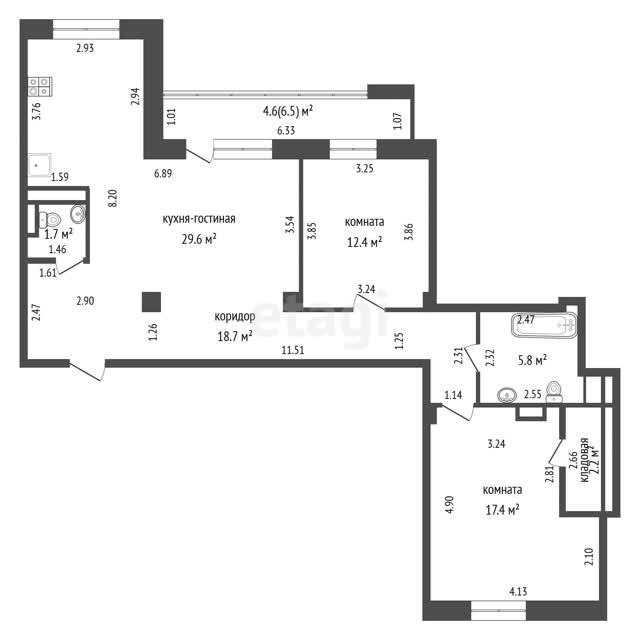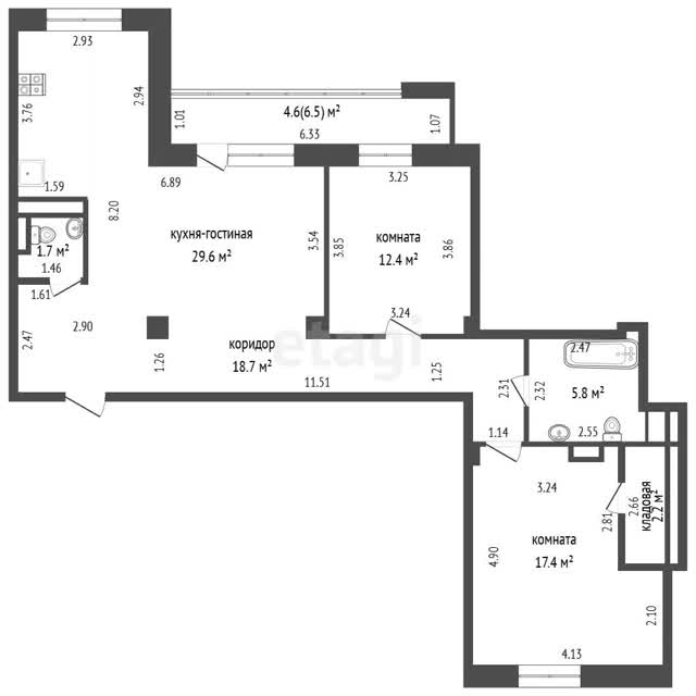 3-room flat, 92.4m², 12/16 floor