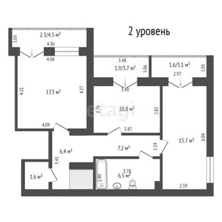 - На втором уровне в зоне лесничного прохода установлен глубокий встроенный шкаф (можно переоборудовать в гардеробную). Спальня с выходом на лоджию.