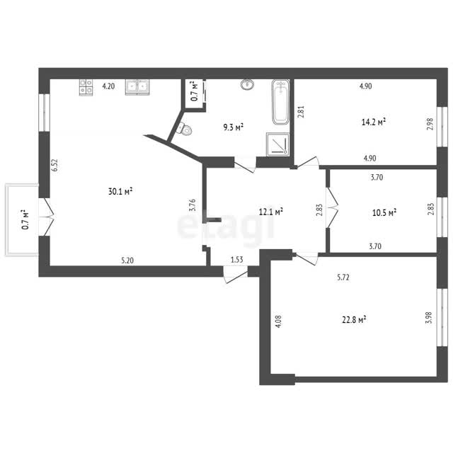 3-комн. квартира, 99.8м², 3/5 этаж